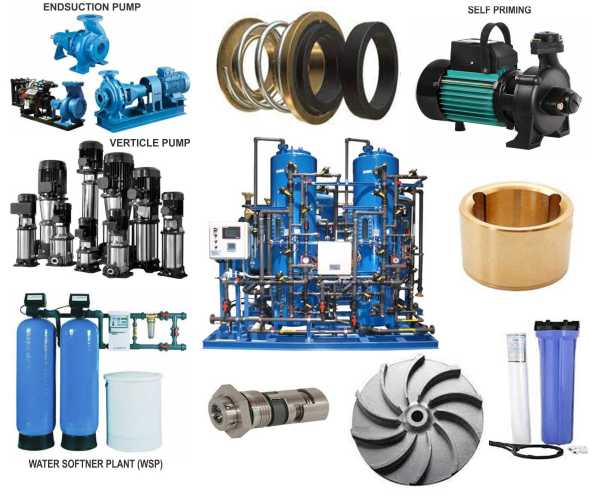 R.O PLANTS, FRP R.O FLANT, STP PLANT, HYDROPNUMATIC SYSTEM, ELECTRO-DEIONIZER SYSTEM (EDI SYSTEM ), SEWAGE TREATMENT PLANT, WATER SOFTNER PLANT, VERTICAL PUMP, HORIZONTAL PUMP, PRESSURE BOOSTER SYSTEM, SEWAGE SUBMERCIBLE PUMP, CENRIFUGAL MONOBLOCK PUMP, ENDSUCTION PUMP, MONOBLOCK PUMP, S.S PUMP, SELF PRIMING PUMP, HOUSING & CARTIGE FILTER, R.O Module, ANTISCALENT DOSING PUMP, LOW AND HIGH PRESSURE SWITCH, MECHENICAL SEAL, BUSH, IMPELLER, SLEEVE and all type of pumps, plants components.